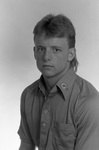 A black and white negative of football player Brian Harp.