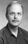 A black and white photograph of a headshot of Gerard Huber, Art Department faculty.