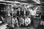 The front side of a black and white photoraph of the Graphic Arts Junior Litho Club. Originally named the ET Graphic Arts Club when formed in the 1972 fall semester, the organization was accepted as a National Junior Litho Club under the sponsorship of the Dallas Litho Club in 1973.