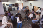 A color slide of Professor Karl Umlauf, Art Department faculty, teaching a painting class.
