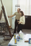 A color slide of Professor Karl Umlauf, Art Department faculty, instructing a painting student.