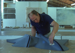 A color slide of Professor Karl Umlauf, Art Department faculty, sanding and shaping one of his sculptures.