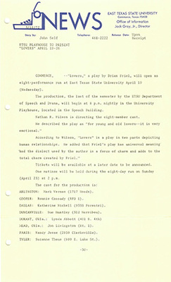This gallery contains selected items from the University Subject File Collection related to the Department of Speech and Drama.
