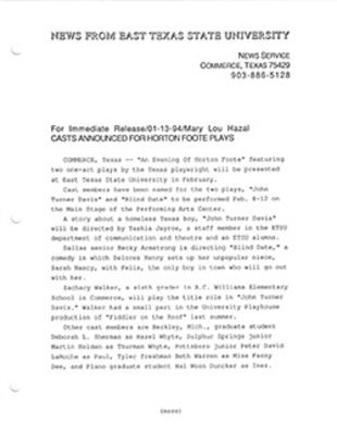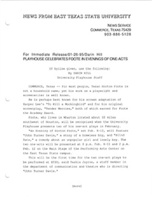 Playhouse Celebrates Foote in Evenings of One-Acts